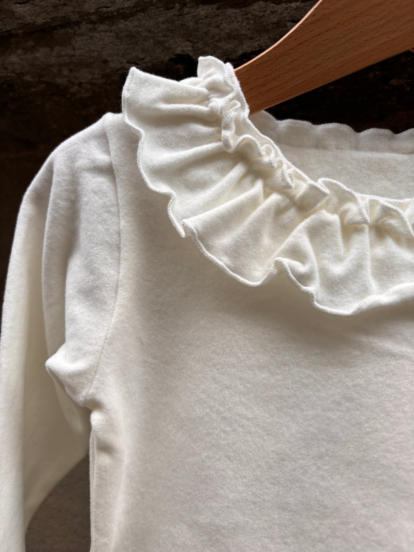 Bellissima maglietta/maglioncino in caldo cotone. Collo con volant perfetto per spuntare da giacchine e scamiciati